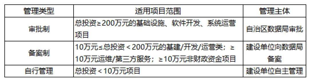 适配自治区机构改革调整,明确自治区数据局牵头、多部门协同的管理格局,覆盖非涉密自治区本级政务信息化项目,涉密项目按专项规定执行;自治区本级其他财政性信息化数字化项目参照执行,各市可结合本地实际制定配套办法。
