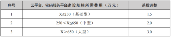 云平台、密码服务平台密码评估费=取费基数×云平台、密码服务平台规模系数