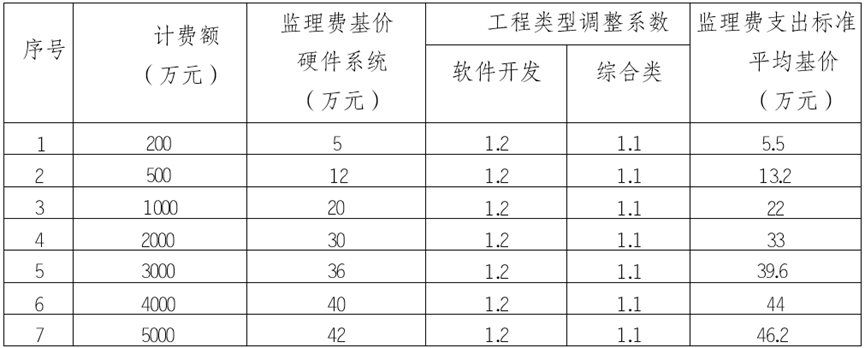 监理费平均基价=[监理费基价(硬件系统)+监理费基价(软件开发)+监理费基价(综合类)]/3